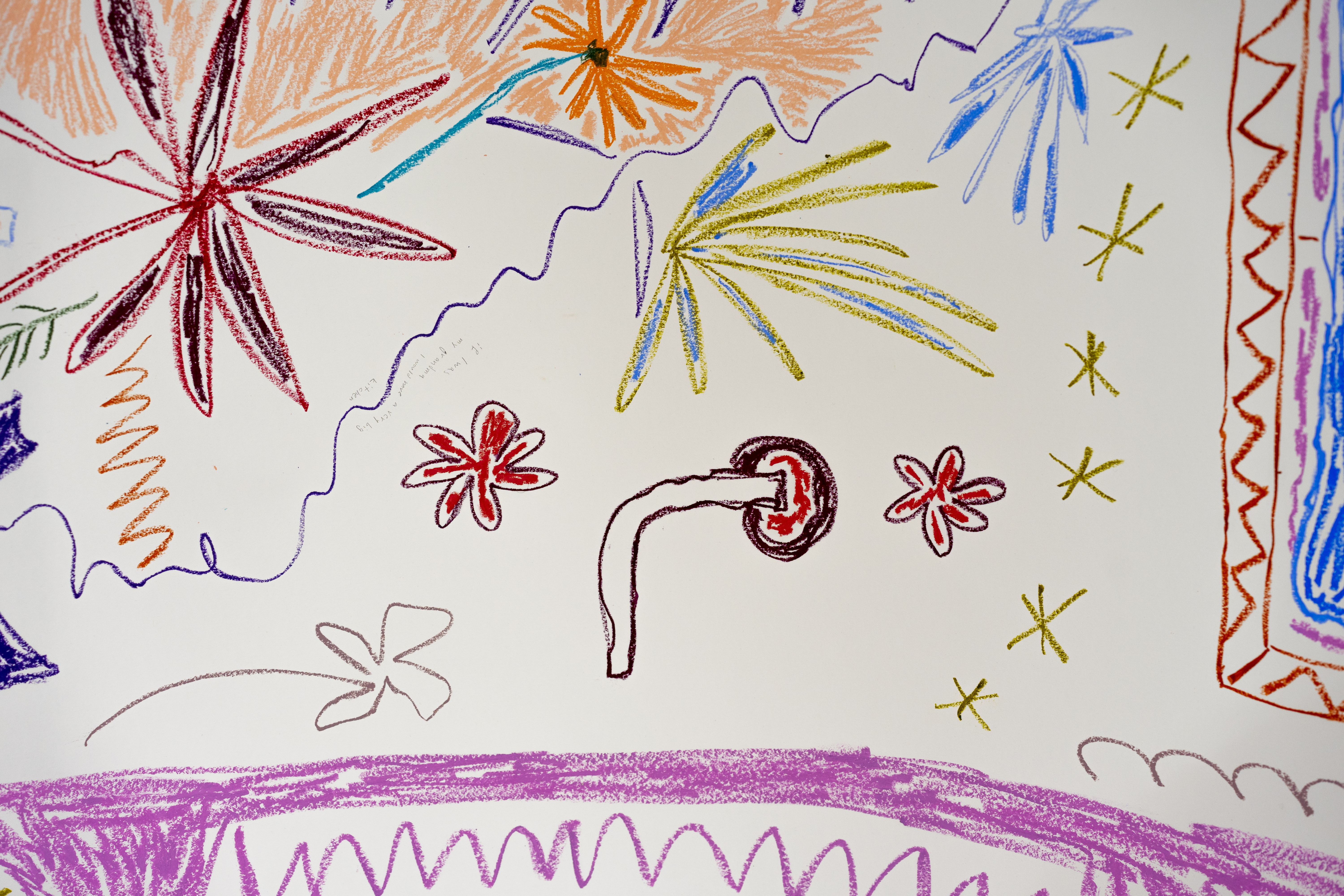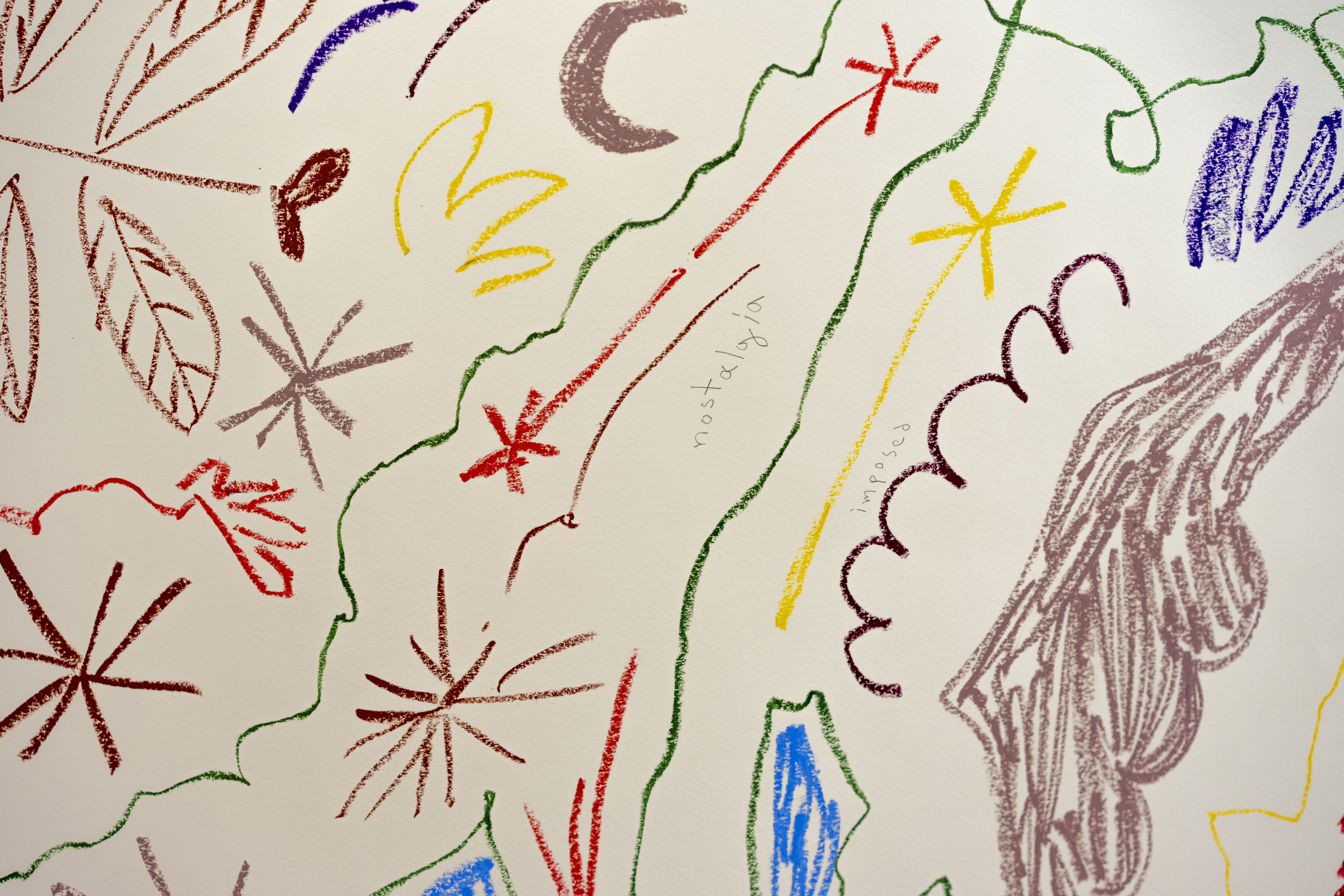 “...The traditional figure of the woman as mother and ultimate caretaker in everyday domestic life remains deeply engraved in our social understanding. Care is seen rather as a natural predisposition in women and not as a social role inscribed upon them through patriarchy – a role whose fulfilment requires actual work and a sacrifice of energy, time, freedom and self-determination. While these conditions resonate in Georgina's artistic work, they in no way dictate its perception. Georgina's work sparkles with joy in a long strand of a seemingly endless narrative of colors, free movement and communality. ‘At the end of the day we dance together’ is a reminder that even if care is a valuable good, it can also be a necessary act of autonomy to completely free oneself from it and dance together into the night without a care in the world...”