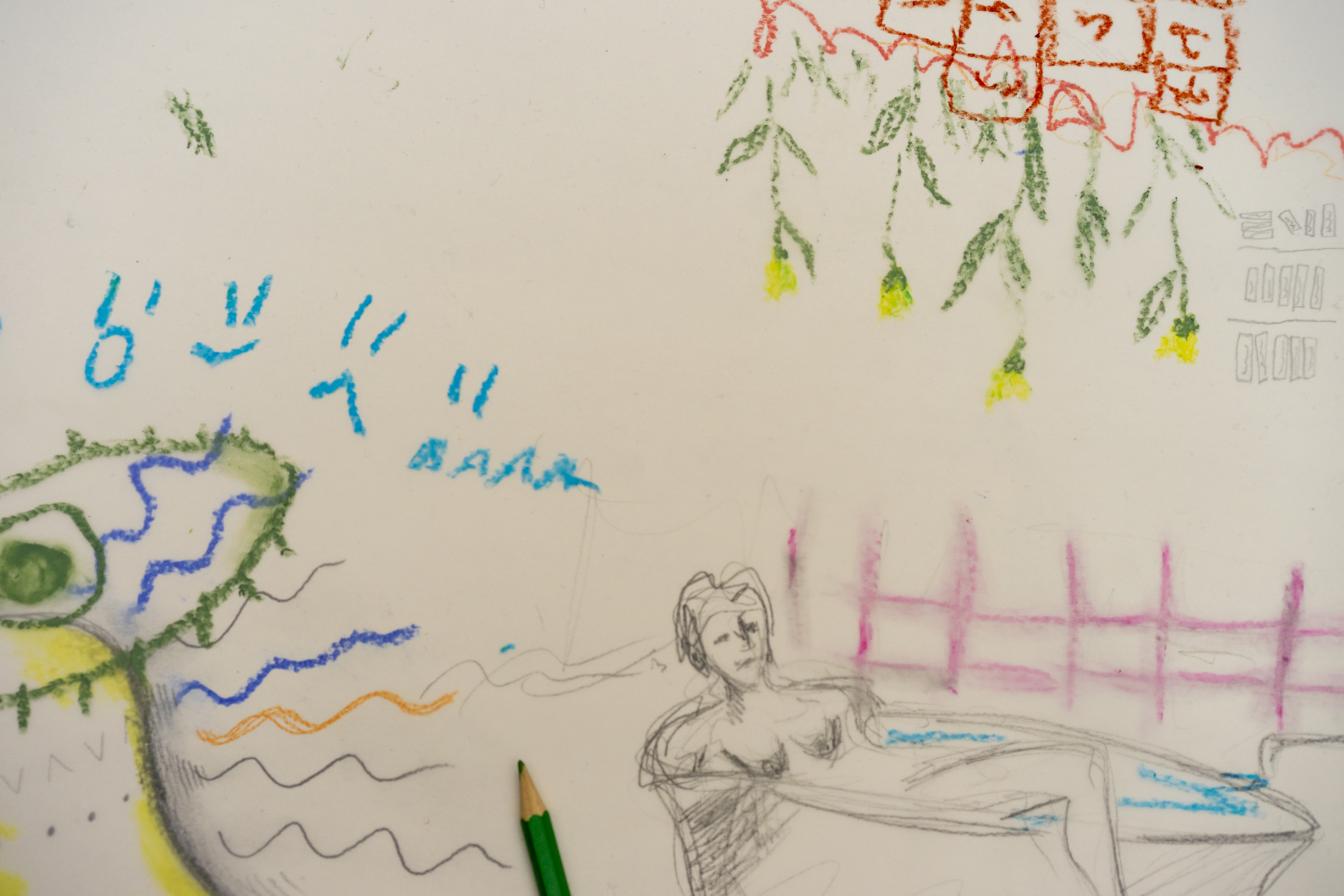 Either alone or sometimes with a guest, the imagination process is initiated and the work is starting: